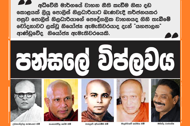 දැන් සිදුවන පන්සලේ විප්ලවය කිසිසේත් නරක ආදර්ශයක් නොවේ. රටවැසියන් වෙනුවෙන් පන්සලත් භික්ෂූනුත් අතීතයේ මෙන්ම මෑත කාලයේත් පෙනී සිටි පූර්වාදර්ශයන් බොහෝමයකි. හිටපු ජනාධිපති මහින්ද රාජපක්ෂ දිනූ දේශය රැක ගැනීම සඳහා ජනතාව සමඟ පන්සල් යෑම භික්ෂූන්, ජනතාව සමඟ සමීප සබඳකම් පවත්වන තාක්කල් කිසිවෙකුට එය වැලකිය නොහැක.‘යහපාලන‘ ආණ්ඩුවට එය ඉරටු දුන්නෙනුත් ඇස් කණ වෙනවා වගේ වැඩක්ය.