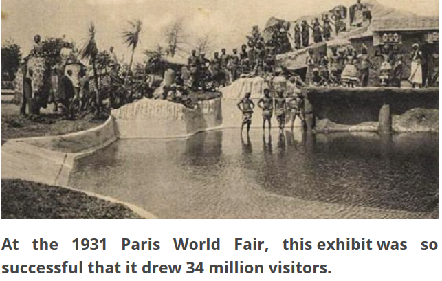 - In 1906 the French built 6 different villages in Jardin d’Agronomie Tropicale displaying villages with natives from Madagascar, Indochine, Sudan, Congo, Tunisia and Morocco. 1million Europeans had come to view them from May-Oct 1907.