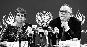 At the conclusion of a visit to Sri Lanka, Emmerson flayed the Sirisena-Wickremesinghe government for not implementing the Geneva Resolution 30/1 adopted on Oct 1, 2015. Addressing the media, at the UN compound, in Colombo, last Friday, Emmerson declared that the Counter Terrorism Act proposed in place of the Prevention of Terrorism Act, (PTA), could become the cornerstone of a new order in Sri Lanka.
