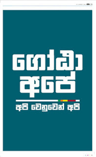 Here’s a poster that gave credence to the speculation that Gotabhaya Rajapaksa would contest the 2020 presidential election: ගෝඨා අපේ (Gota is ours). It was signed, ‘අපි වෙනුවෙන් අපි (us for ourselves),’ the tagline of the campaign to support the security forces during the last years of the war on terrorism, executed when Gotabhaya was the Secretary, Ministry of Defence. An exercise in branding, obviously.