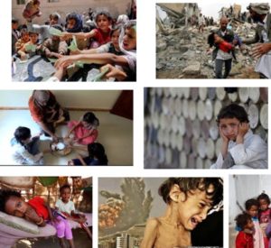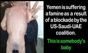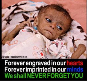 Heartbreaking photos are being relayed across the social media of children in hunger. These photos raise to the surface many a question & hypocrisies that prevail in global diplomacy & highlights the bias of international peace bodies & human rights activists. We are not bothered by who is right but what should concern us is that these R2P ‘humanitarian’ interventions claiming to save the lives of people by getting rid of a supposed ‘dictator’ is only resulting in killing far more people than the supposed dictator is allegedly accused of killing. The West-Saudi led attacks on Yemen has left a country of 28m people in virtual starvation & not even the UN is doing anything about it.