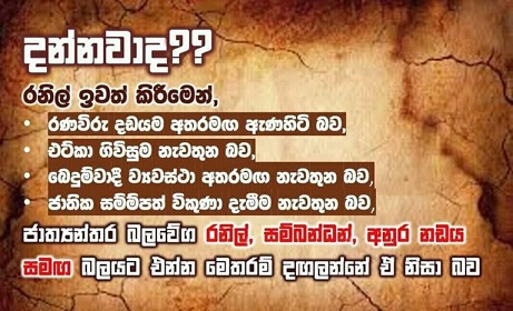 The people must now realize by the bloc uniting to replace the ousted Prime Minister that their motives camouflaged by democracy dictums have nothing to do with the interests of the Nation or its People. This alone suffices to awaken the people as to the lurking dangers & the need to defeat them democratically at a future election if the people wish to secure the sovereignty of Sri Lanka.