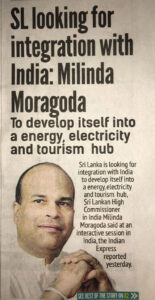 ඉන්දියාවේ ශ්රී ලංකා තානාපති මිලින්ද මොරගොඩ මහතා විසින් ශ්රී ලංකාවේ ආර්ථිකය ඉන්දියාවේ ආර්ථිකය සමඟ ඒකාබද්ධ කල යුතු බවට ඉල්ලීමක් ඉදිරිපත් කළ බව ද daily mirror පුවත්පත වාර්තා කරයි.
