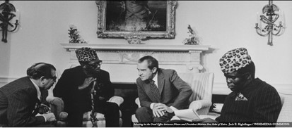 Meeting in the Oval Office between President Nixon and President Mobutu of Zaire, known as Democratic Republic of Congo (DRC) since 1997. The uranium used in making the bomb and subsequent atomic weapons were sourced from the DRC. Credit: Jack Kightlinger | Wikimedia Commons. – Photo: 2023