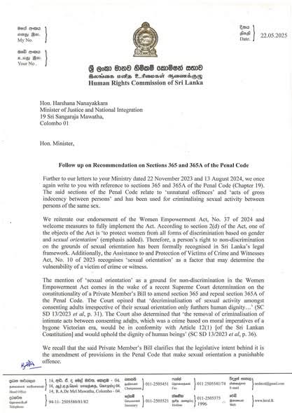 Section 365A is one of the few legal shields male children have in Sri Lanka against predators. Rather than repeal this entirely as was the 2023 proposal, this should be amended to include female & 365A should be further strengthened. However, the Human Rights Commission Sri Lanka appears to want to remove this safeguard too.