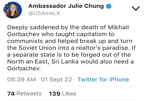 This hashtag had influenced an art historian (?) domiciled in a foreign country to comment that it is far more linguistically polite”. Outsiders who do not know the ground realities here, who rely on their servile local informants, (it’s a case of mutual back scratching and exchanging gossip and feeding misinformation, rather than engaging in an academic discourse) would have been shocked if they had known the trilingual hashtag popularised by some groups of protesters later : #GoGota#PoGota#PalaGota. (This group was sanitised by a Columbian columnist; two months after this purification” a prominent member of this group was arrested and remanded in connection with an assault of two intelligence officers, another example for a peaceful” protest!)
