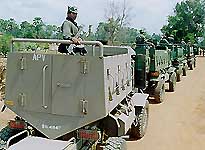Yet there is time for a joke or a smile. Most soldiers along the route to Mankulam peered at the three Armoured Personnel Vehicles (APV) carrying journalists with curiosity and some even waved.